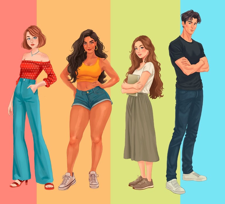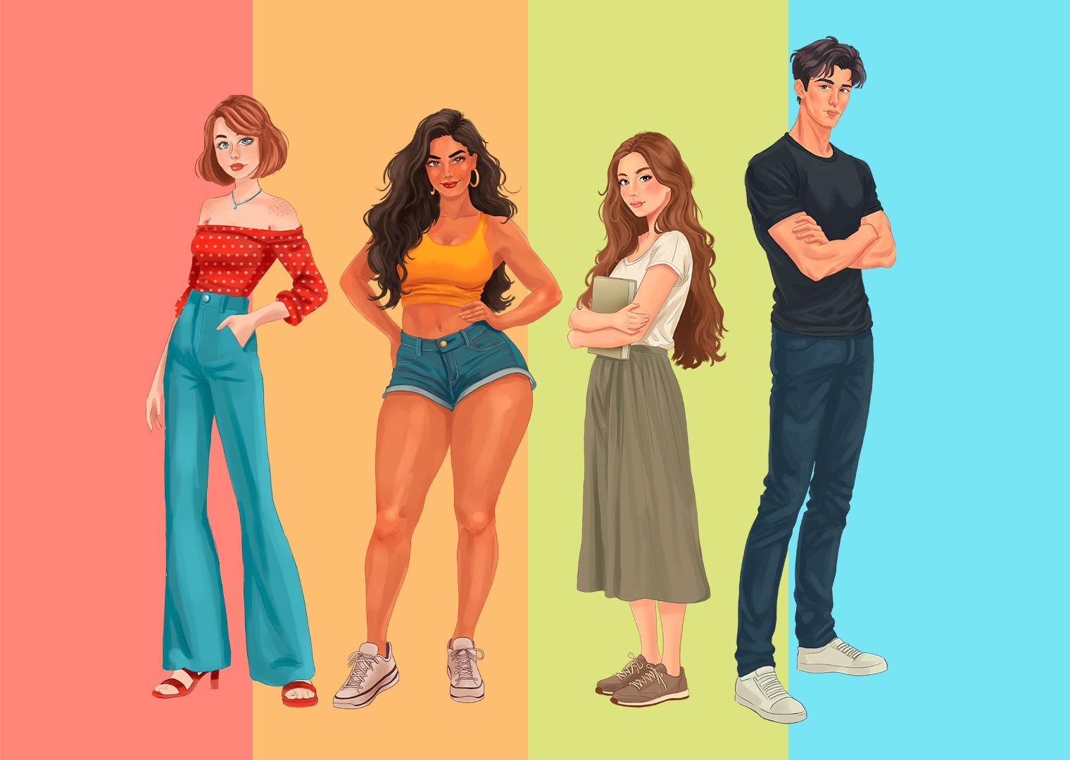 Se caracterizan por tener personajes poco detallados y dibujados con un color plano sobre un fondo llamativo y lleno de vida.